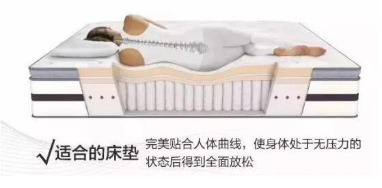 合适的床垫能使脊椎保持自然的伸展度,与肩、腰、臀完全贴合,不留空隙。